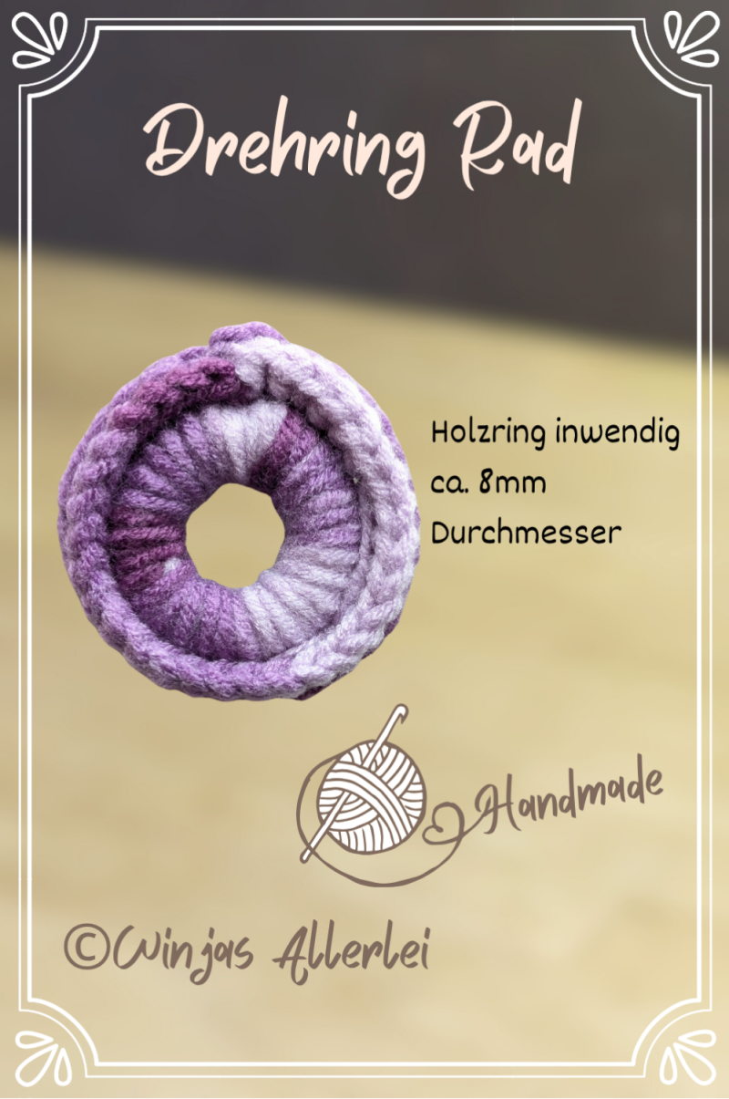 Sensorisches Hilfsmittel. Dieser Finger-Drehring enthält inwendig einen Holzring, welcher weich umhäkelt ist. Hergestellt by Winjas-Allerlei.ch