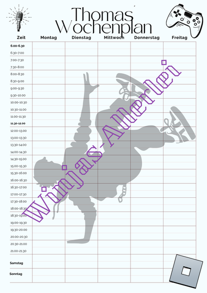 Unterrichtshilfen/Lernhilfe personalisiert. Hausaufgaben, Hobbies & Freizeitgestaltung, alles auf einen Blick auf dem Wochenplaner. Dieser wird nach Wunsch individuell, anhand der Interessen des Kindes gestaltet. In laminierter Ausführung, damit dieser wöchentlich angepasst werden kann.